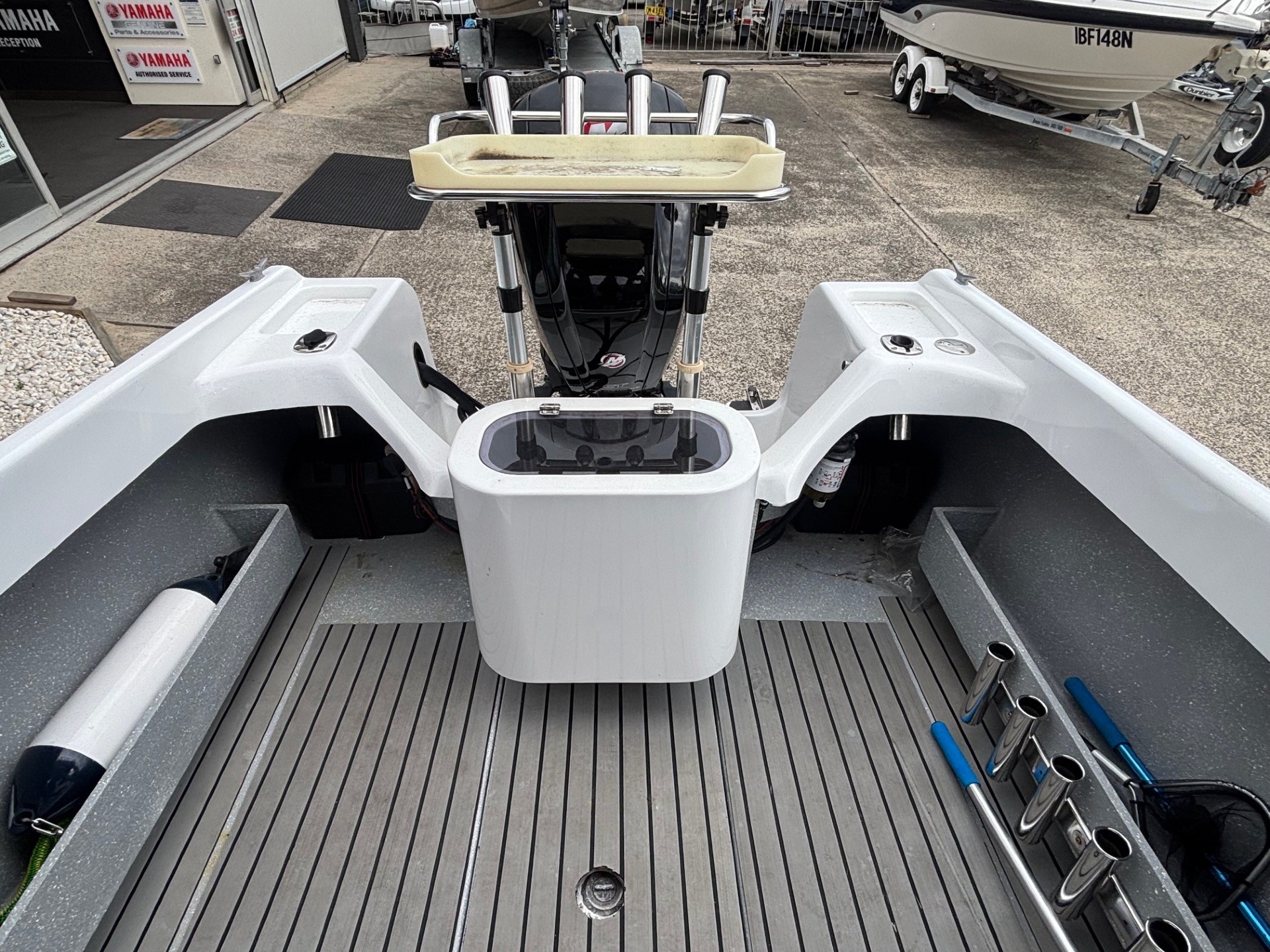 full restoration,transom,floor,flow coat all internals,new tinted windows,new bimini,clears and launchers,respray,new gunwale rubber.