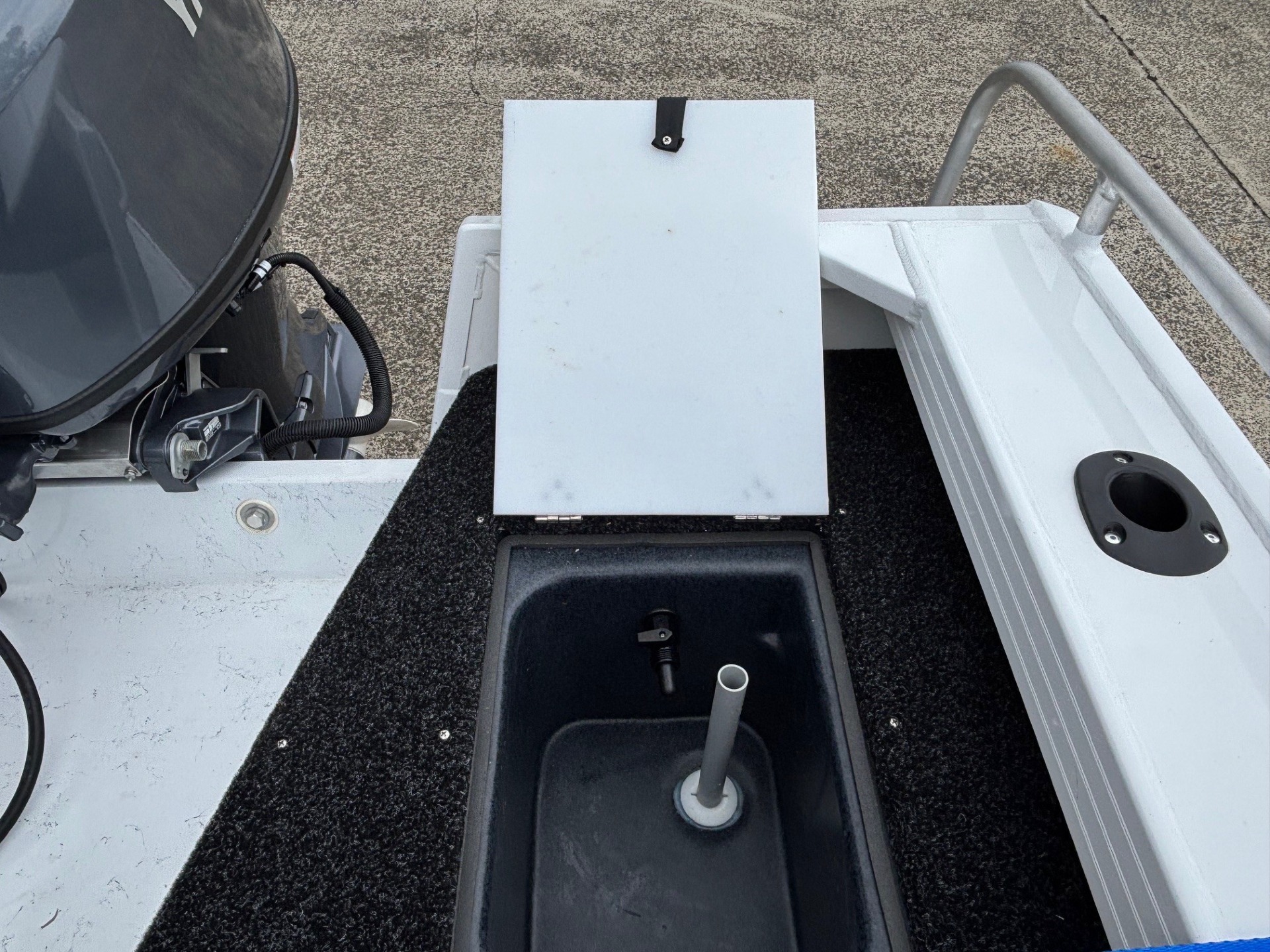 The central live bait tank, rod storage pockets, and casting platform make it easy to keep your gear organized and within reach. And with the thruster bracket bow mount you have the option of adding a trolling motor!
