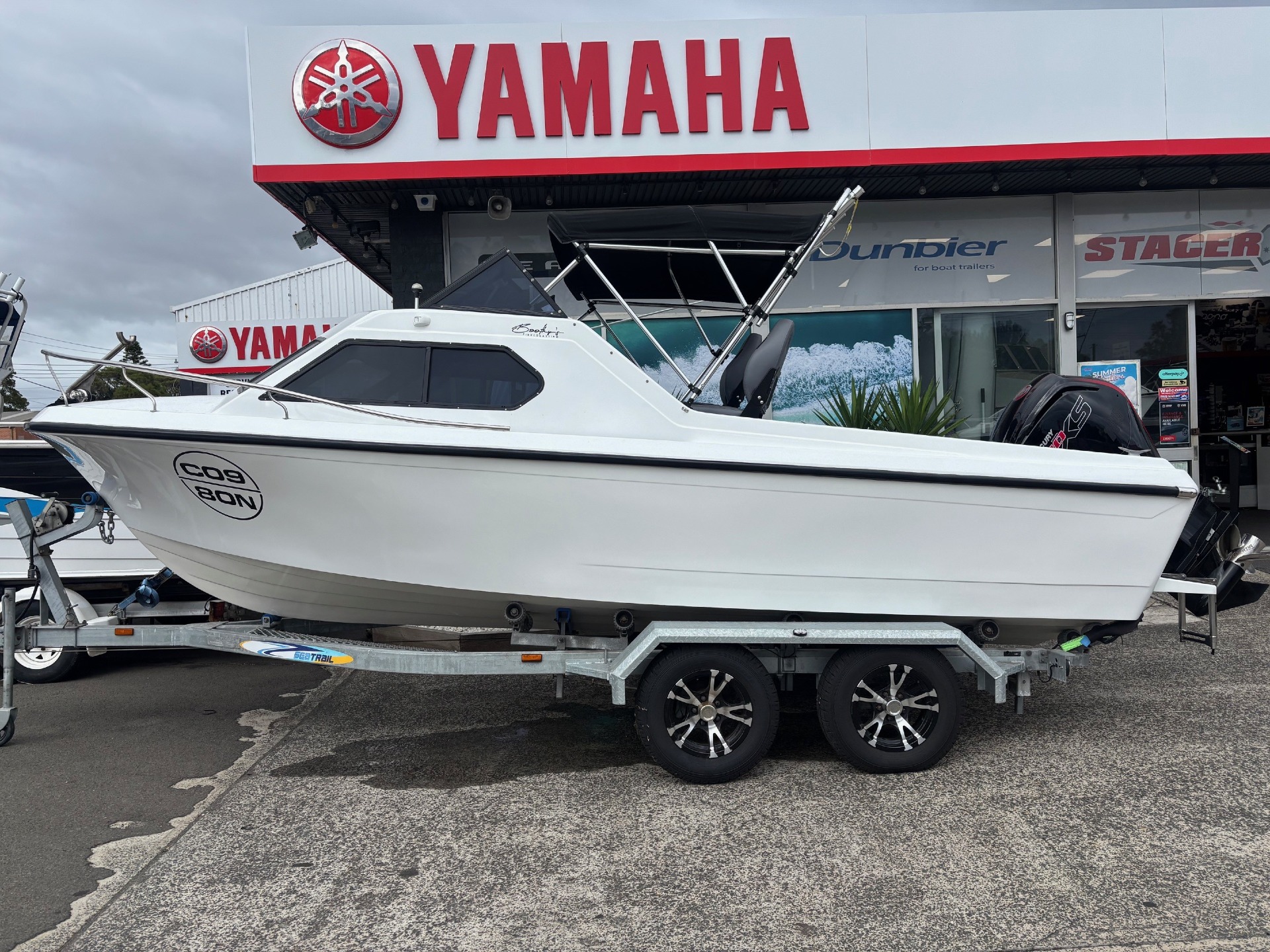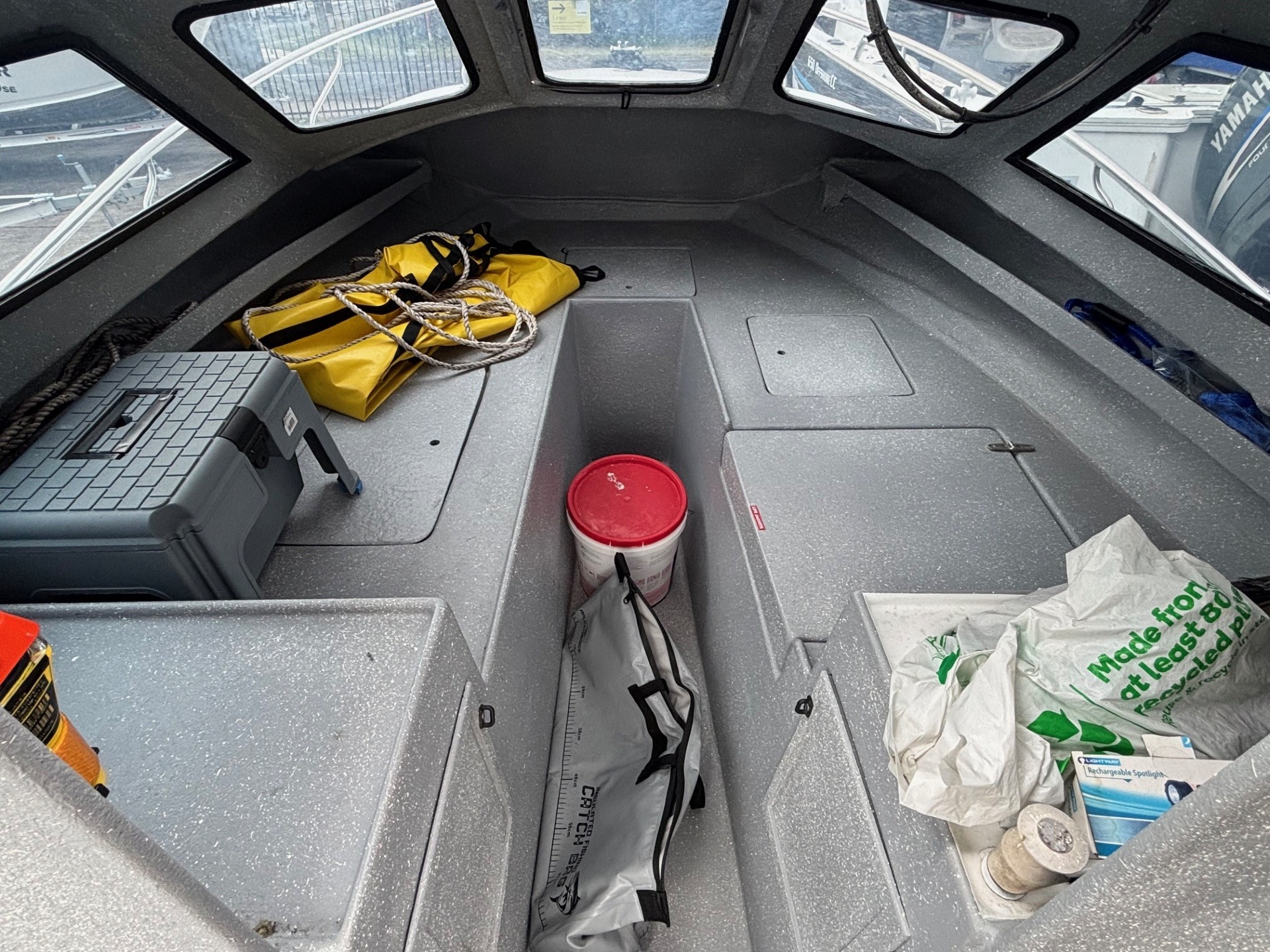 full restoration,transom,floor,flow coat all internals,new tinted windows,new bimini,clears and launchers,respray,new gunwale rubber.