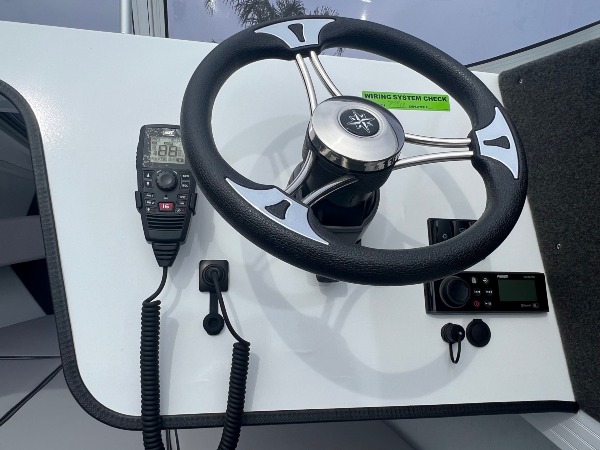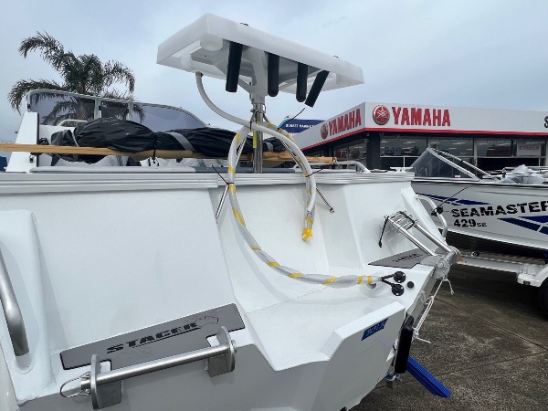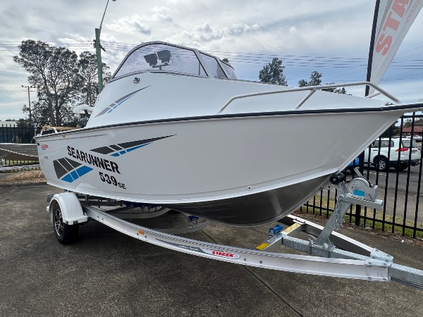 Stacer’s Sea Runner range features a mass of storage space. All models come with a walk through hatch and provide protection from the elements so you and your family can enjoy the ultimate weekend. All models feature the Revolution Hull to give you a soft and stable ride. This 539 will be fitted with a Yamaha F130 outboard which has just been delivered to our workshop! A fantastic family fishing boat!!